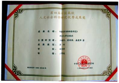 周明强教授专著《现代汉语歧义识别与消解的认知研究》获浙江省16届哲学社会科学优秀科研成果三等奖